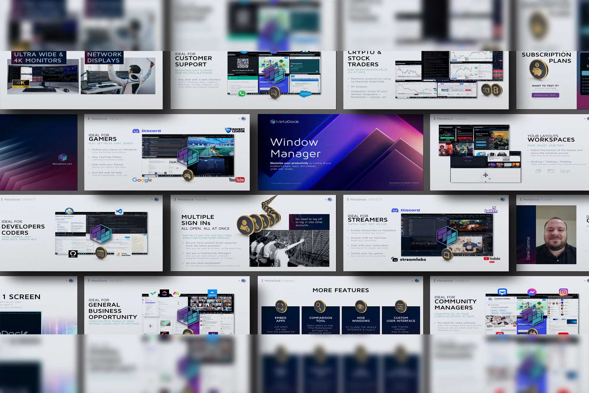 The target audience comprises individuals seeking to master multitasking, particularly those who work on multiple projects simultaneously. MetaDock caters to professionals, creatives, and multitaskers looking to enhance their workflow. - Roles and Responsibilities: